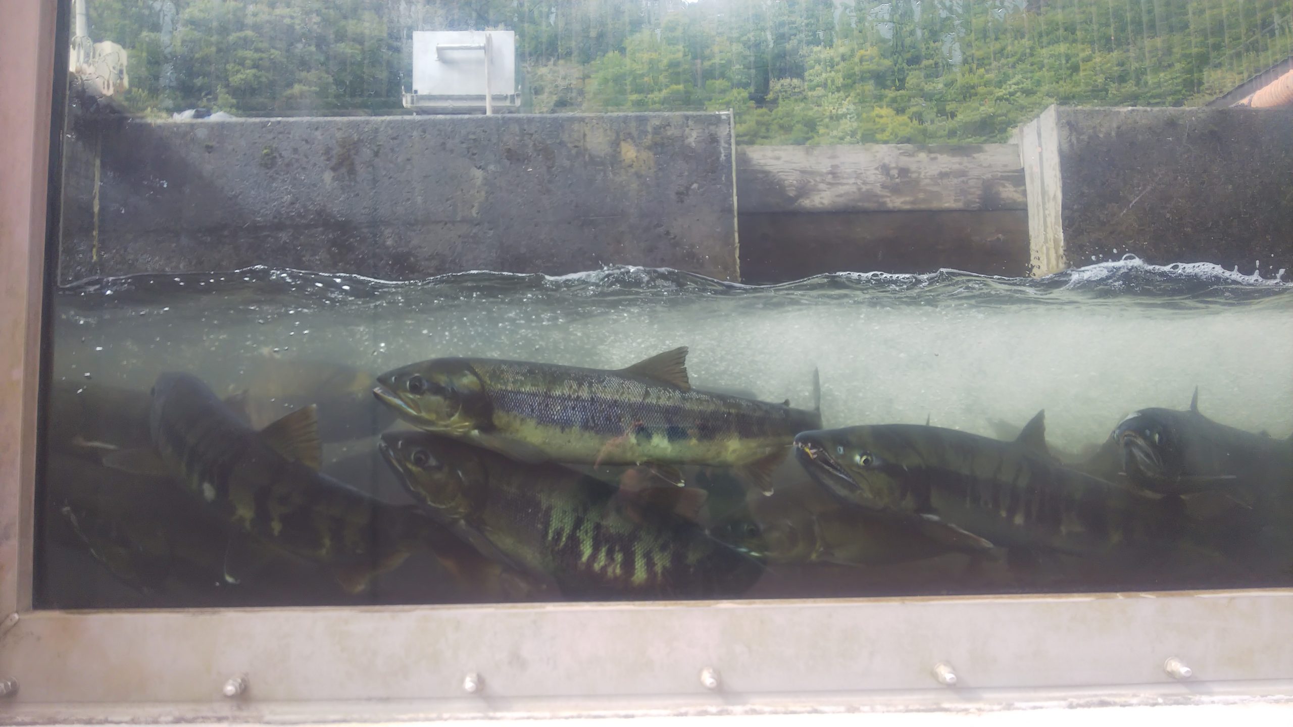 水車公園 雑談DSC_0402 2025.10.13 近所にある水車公園。 10月になると鮭が川をさかのぼってきて、川辺に作られた観察用の水槽で見ることができる。 今年は鮭が少ないと聞いて心配してたんだけど、しっかりと今年も川に帰って来てくれていました。